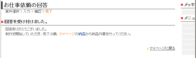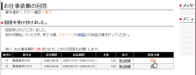 なお、回答した案件の他にもお仕事依頼がある場合は、残りの案件が完了ページに表示されますので、すべての依頼にご回答ください。